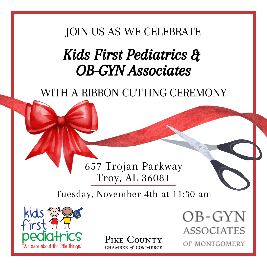 Join us as we celebrate the expansion of Kids First Pediatrics with the addition of OB-GYN Associates, coming together to create the new Women’s and Children’s Clinic. This collaboration marks an exciting step toward providing comprehensive care for women and children in our community. 📍 Location: 657 Trojan Parkway, Troy, AL 36081 📅 Date: Tuesday, November 4th, 2025 🕒 Time: 11:30 AMImages